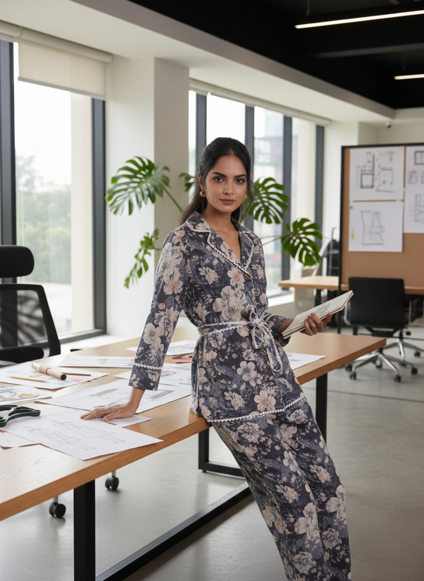 Elevate your wardrobe with this beautiful Cotton Schiffli Co-Ord Set, designed with delicate digital prints and adorned with intricate lacework. This set combines comfort and style, making it perfect for any occasion.