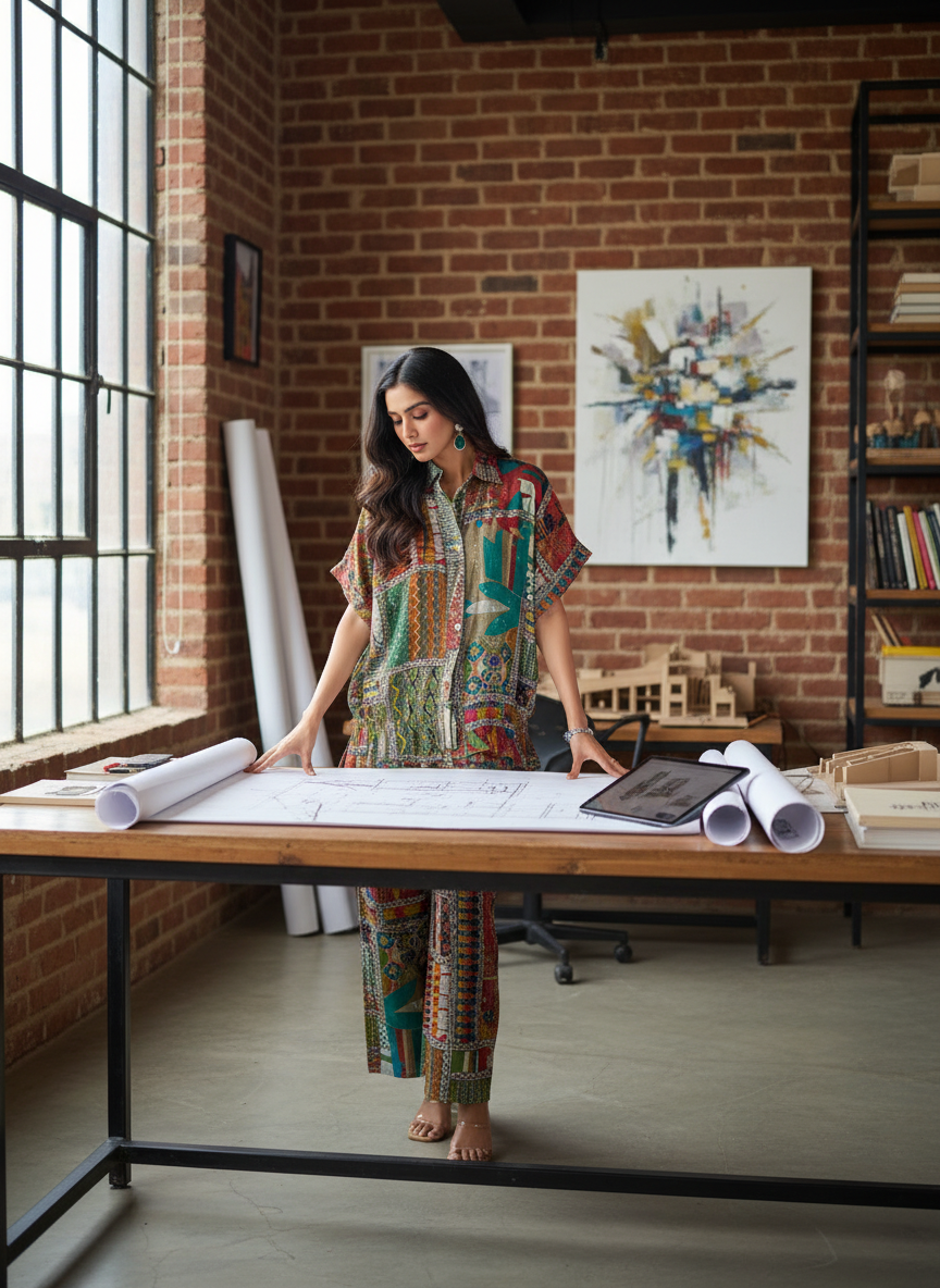 The Kate Beige Modal Chanderi Co-Ord Set is a subtle and chic option made from luxurious modal chanderi fabric. The beige color offers a classic look, making it a perfect choice for elegant semi-formal or formal occasions.