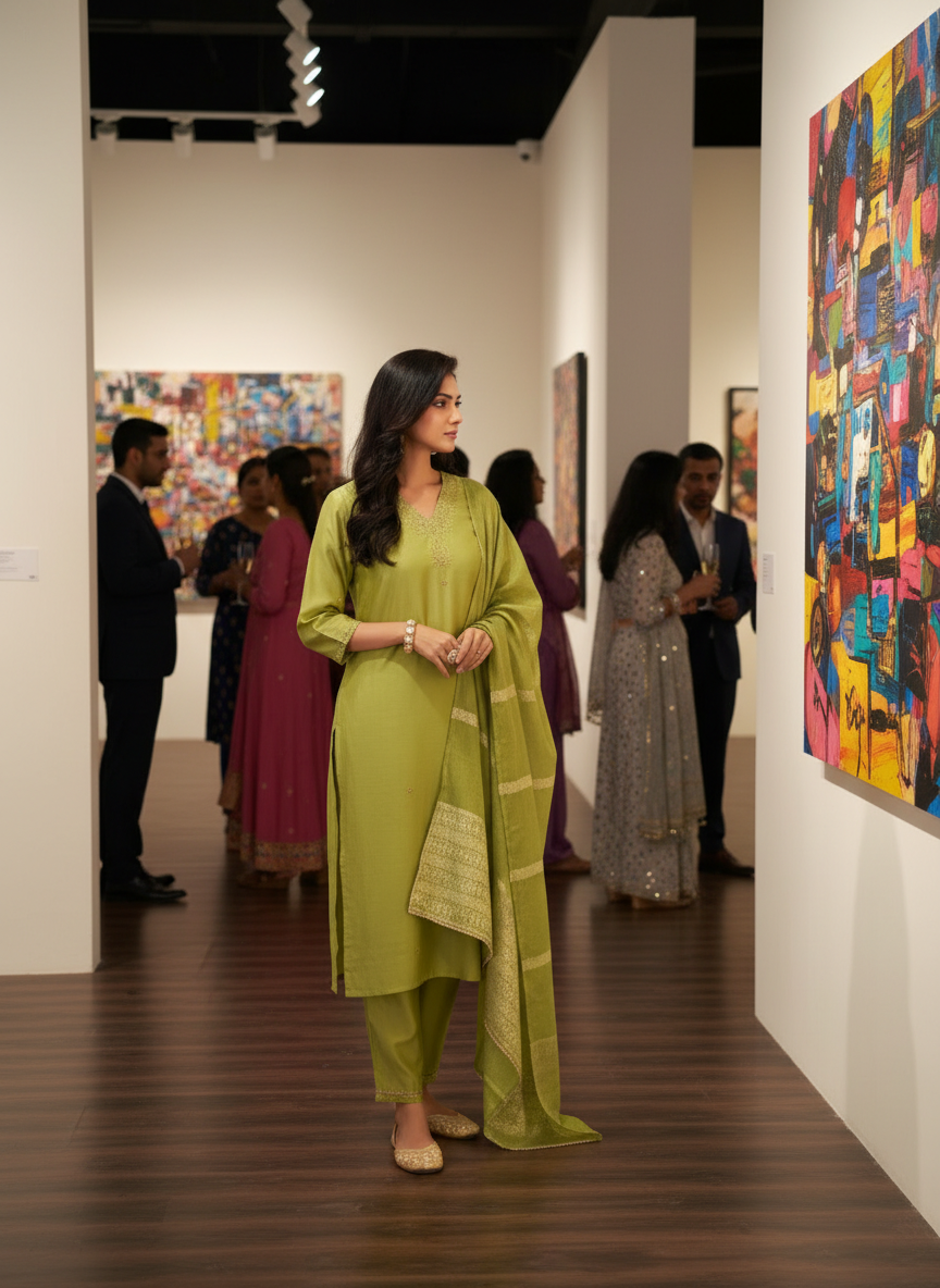 Nakshatra Green Kurta Set with Dupatta β Sophisticated Elegance and Luxurious Comfort