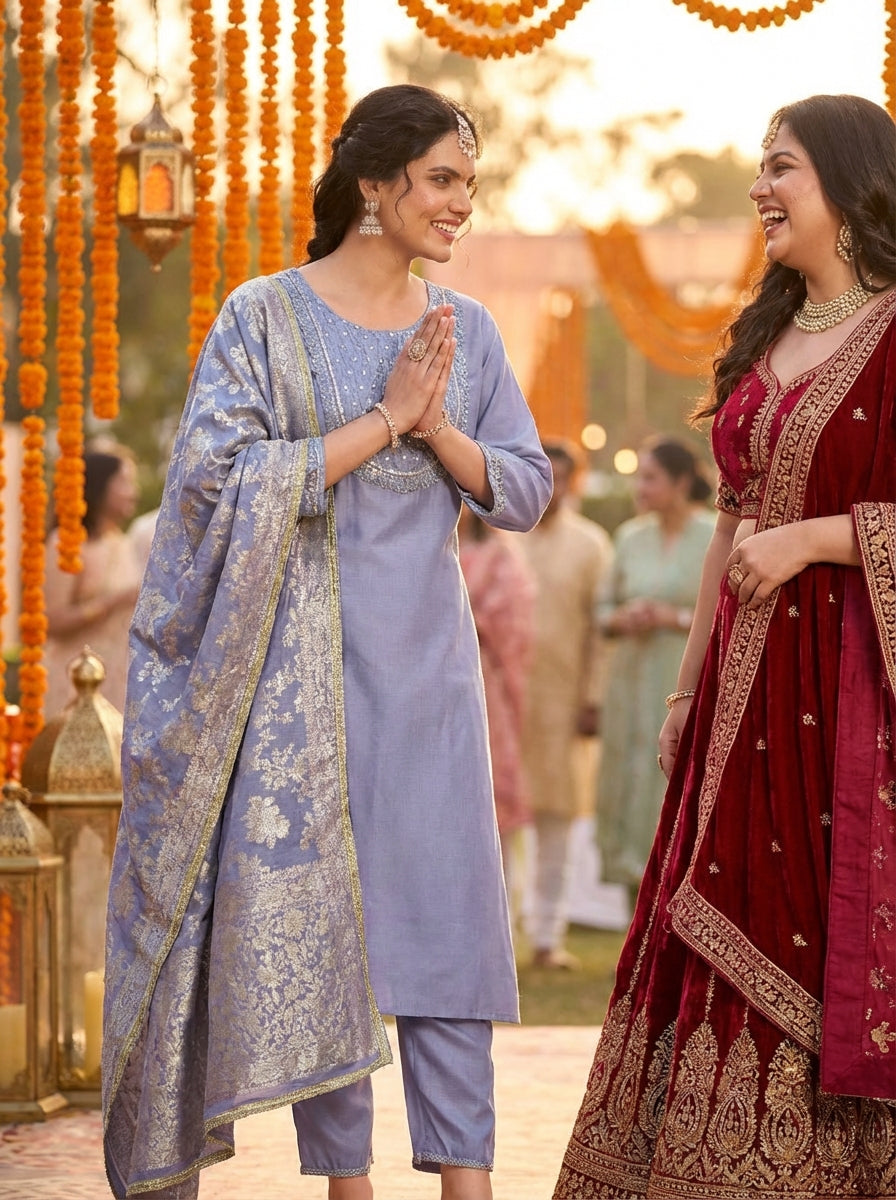 The Sehmat Purple Kurta Set with Dupatta is the epitome of timeless elegance and effortless style, making it a must-have for your wardrobe.